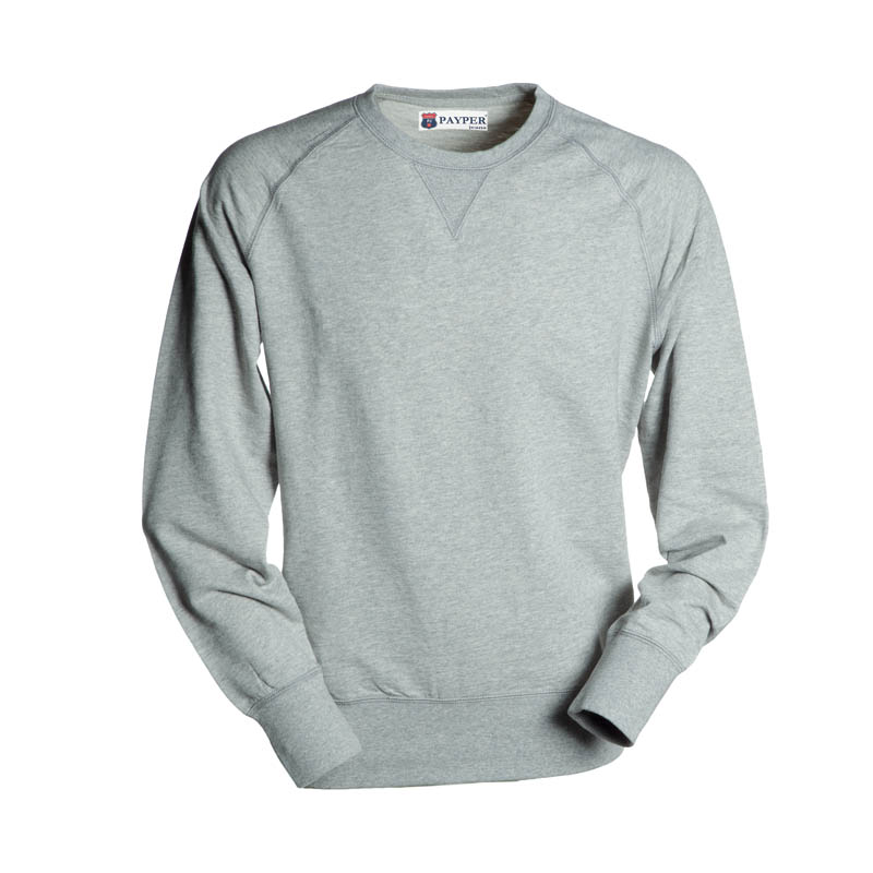 Felpa uomo girocollo manica raglan, cucitura estetica a V al collo, polsini e vita in costina elasticizzata, 80% cotone e 20% poliestere, 250 gr/m2.