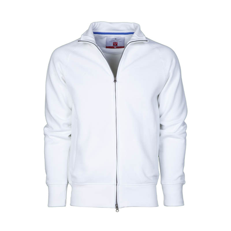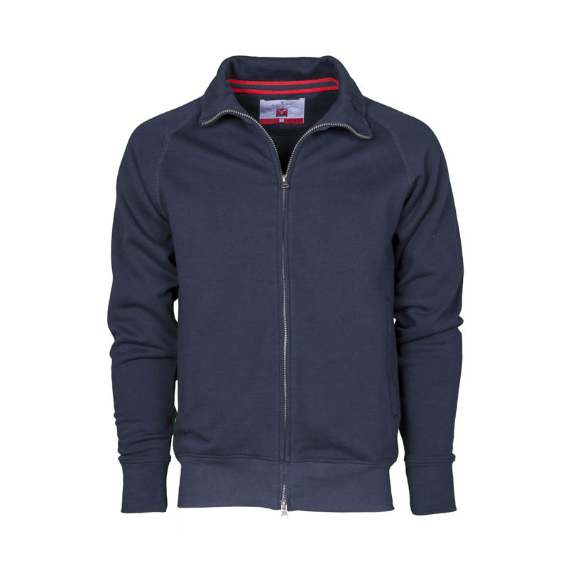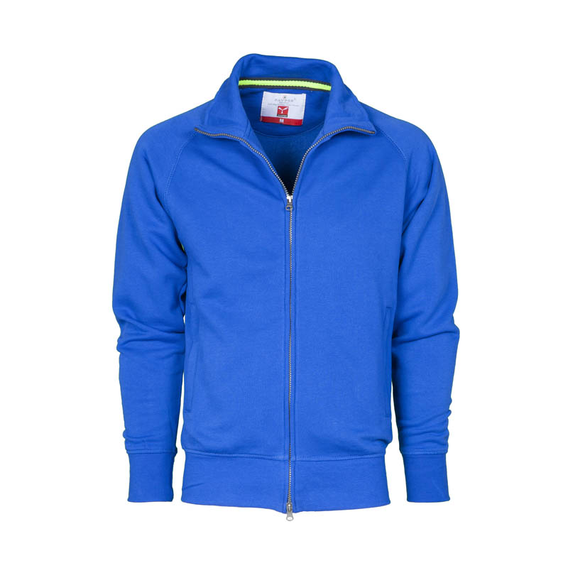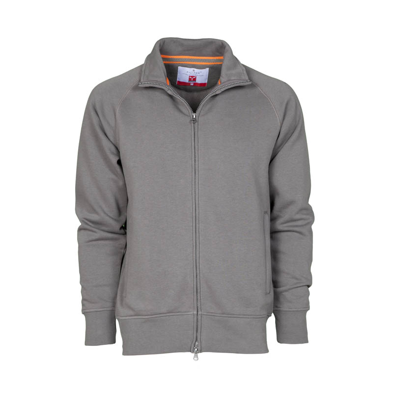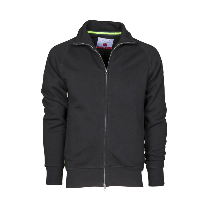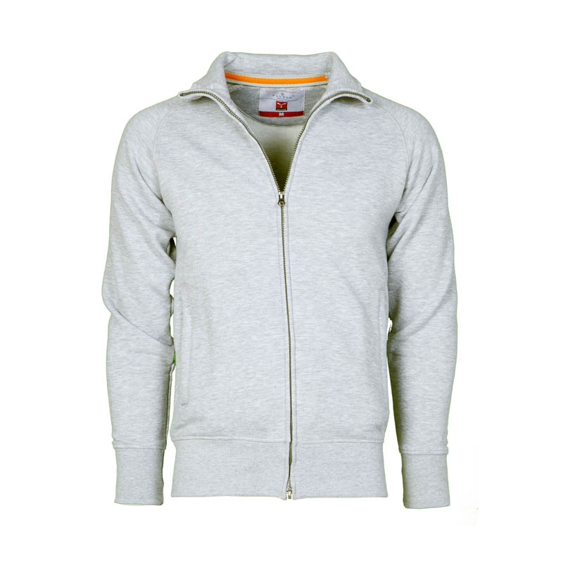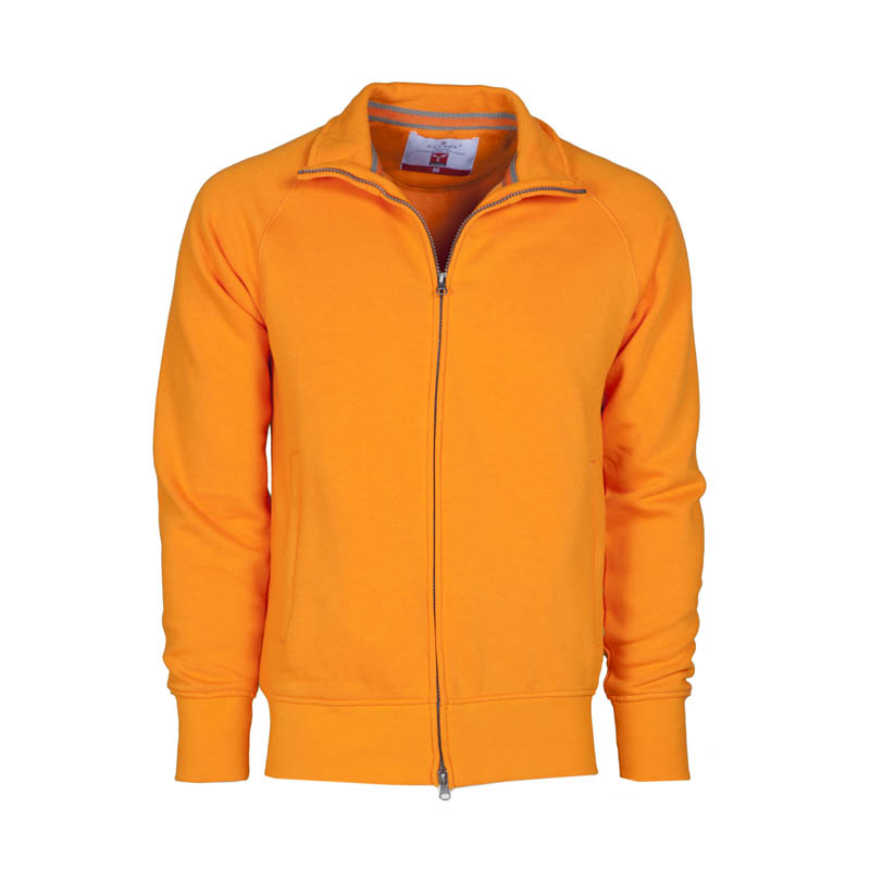 Felpa uomo con zip intera e manica raglan, due tasche con zip coperte, polsini e vita in costina elasticizzata, garzata, 70% cotone e 30% poliestere, 300 gr/m2.